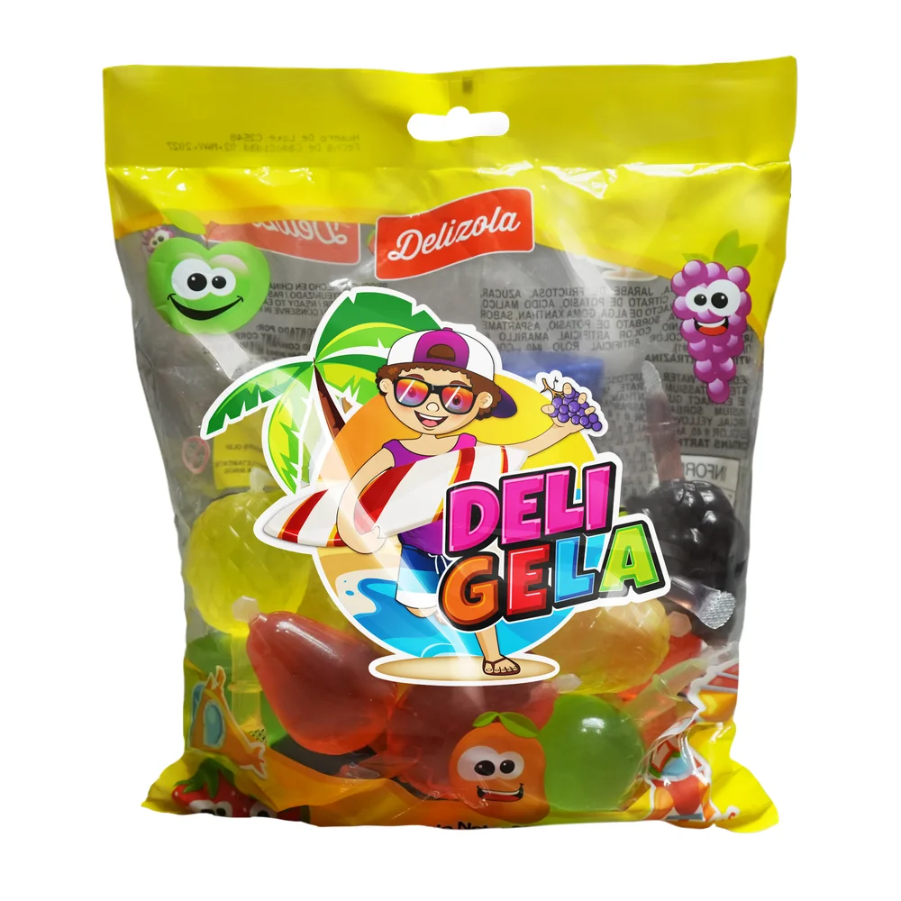Soft and delicious gelatin snacks in fun fruit-shaped containers, ready to open and enjoy a fresh, playful experience.