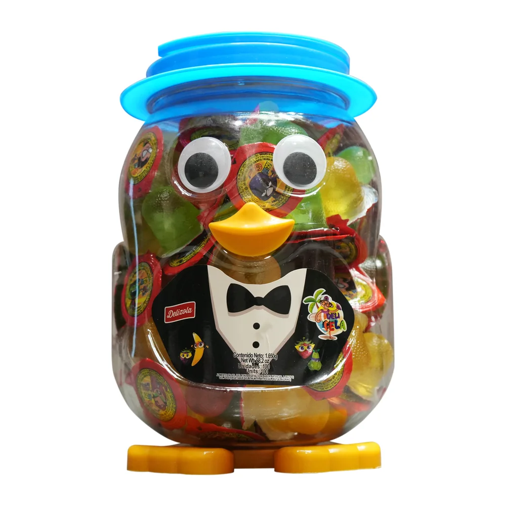 Fruit-studded gelatin bites with a charming penguin character, individually sealed to preserve every bit of freshness and sweetness.