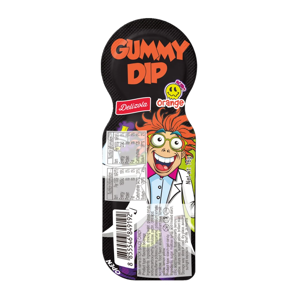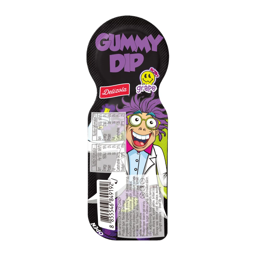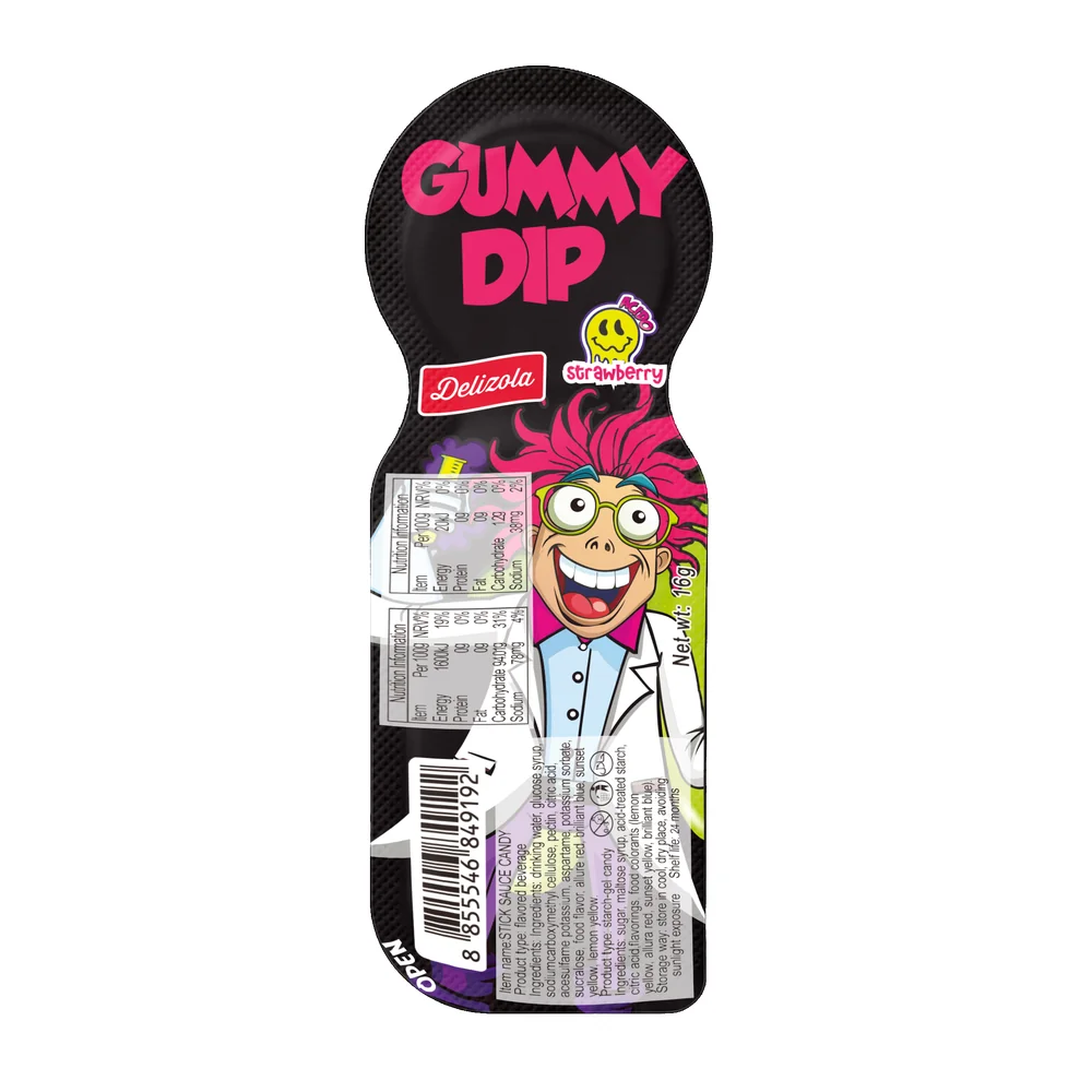 Delicious gummy candies paired with a sweet liquid caramel dip for a fun, interactive snacking experience in every bite.